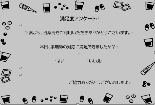 患者様への投薬後、下記満足度アンケートを実施しています!